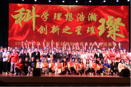 11月26日晚,为深入贯彻习近平总书记“七一”讲话精神和党的十九届六中全会精神,表彰先进,迎接新生,展现学院青年积极的精神风貌,营造科技文化氛围,由太阳成集团122ccvip团委和教学办主办,太阳成集团122ccvip众创空间和学生会承办的“科学理想浩瀚,创新之星璀璨”创新创业颁奖典礼暨迎新晚会在大礼堂成功举办。
