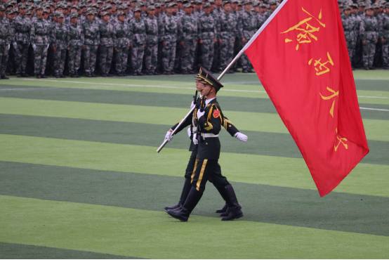 旗帜鲜明,步伐铿锵。汇演在升国旗、迎接校旗后开始,首先是分列式表演,二连方块队动作整齐划一,精神高度饱满,口号声金鼓喧阗,昂首挺胸走过主席台。这充分展现了二连全体成员14天的刻苦训练、团结协作的风采。