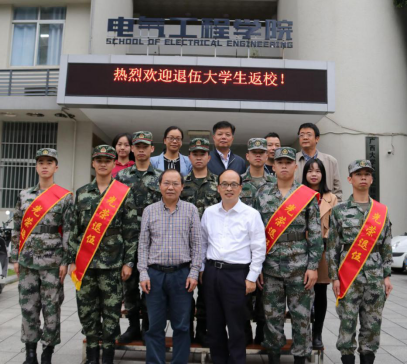 领导、老师与退役大学生合影