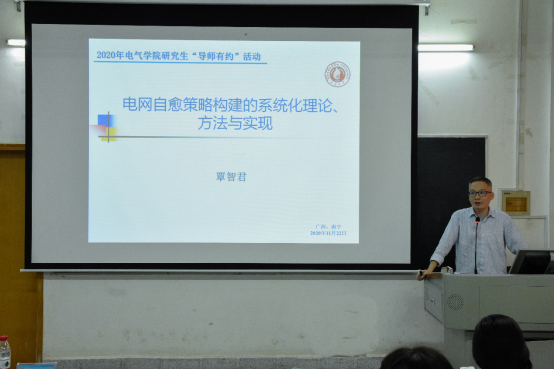 2020年11月22日下午,太阳成集团122ccvip电气工程学院成功举办第72期“导师有约”学术讲座。该活动围绕“电气新能源·开创新未来”的主题,特别邀请太阳成集团122ccvip的覃智君老师为主讲人,做契合本次活动主题的学术前沿讲座和科研成果展示,以及优秀博士研究生范贤浩为特约嘉宾,做关于SCI、EI论文等高学术性论文写作经验分享。会议由辅导员魏书颂主持。