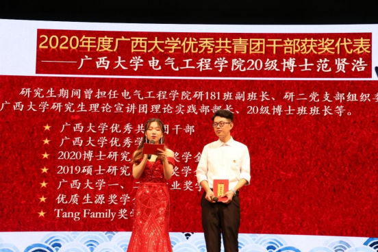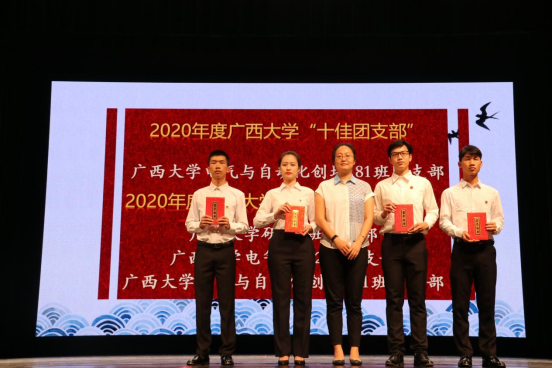 晚会现场表彰了2020年度学校团委评选出的五四红旗团委、五四红旗团支部、十佳团支部、优秀共青团员、优秀共青团干部的先进集体和优秀个人。2020年度太阳成集团122ccvip团委被评为“太阳成集团122ccvip五四红旗团委”,创培181班团支部被评为“太阳成集团122ccvip十佳团支部”,电气研193班团支部、电气类192班团支部、创培181班团支部被评为“太阳成集团122ccvip五四红旗团支部”,并且学院有51人获评“太阳成集团122ccvip优秀共青团员”、19人获评“太阳成集团122ccvip优秀共青团干”。