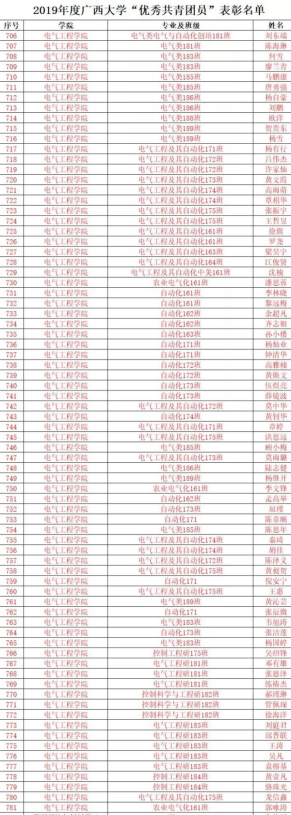 ——我院获校 “优秀共青团员” 表彰的学生名单