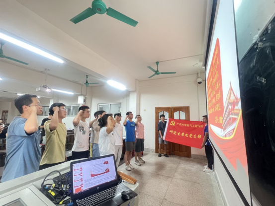 黄萍书记带领转正党员和与会正式党员一起重温入党誓词