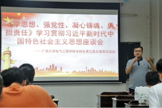 接着,各党小组的代表上台分享交流学习心得,梁嘉慧同学认为:“作为党员,要从思想入手,不断武装自己的思想,逐步融入到自己的实践中去。要做一事、成一事,逐步成长为善良、勇敢、无私的新时代好青年”。张一凡同学认为:“理论学习一直是党的重要任务,认真学习马克思主义是每位党员都应当做到的,习近平新时代中国特色社会主义思想作为马克思主义中国化的理论成果,我们更应当认真学习”。黄莉婷同学认为:“我们要做到学思用贯通,实干担当促发展,践行全心全意为人民服务的根本宗旨,为人民造福”。列席本次座谈会的发展对象代表也积极分享学习心得,其中韦圣鑫同学谈到:“思想指导实践是十分重要的,没有理论知识只是纸上谈兵,所以我们要认真学习习近平新时代中国特色社会主义思想,在思想上入党,行动上入党,争取早日加入中国共产党”。