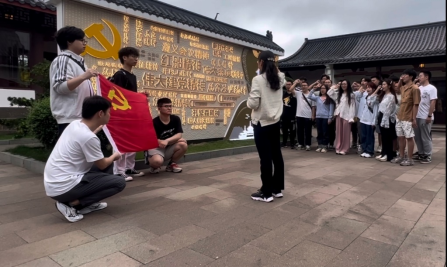 随后,在主题园内,支部书记黄萍带领党员同志重温入党誓词,使得同志们能够回忆入党时的决心与信念,鞭策和激励同志们要做到不忘初心、牢记使命,不断地向优秀党员同志学习,做一个能坚持发挥先锋模范作用的共产党员。
