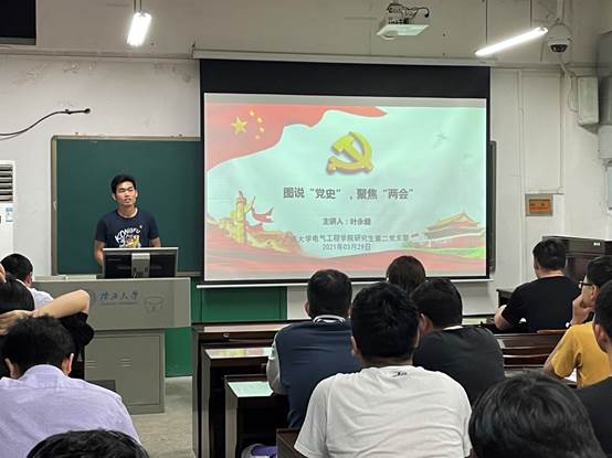 为贯彻落实习近平总书记在党史学习教育动员大会上的重要讲话和全国两会的重要指示精神,2021年3月29日晚,太阳成集团122ccvip研究生第二党支部在电气楼201开展了一次主题为图说“党史”,聚焦“两会”的党日活动,学习百年党史,汲取奋进力量。研二支部书记徐俊华、支部委员叶永健、陈钊、李秀、刘经纬等全体党员参加活动。